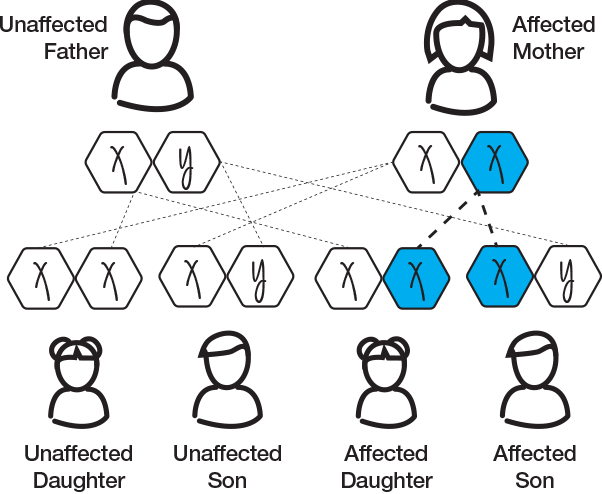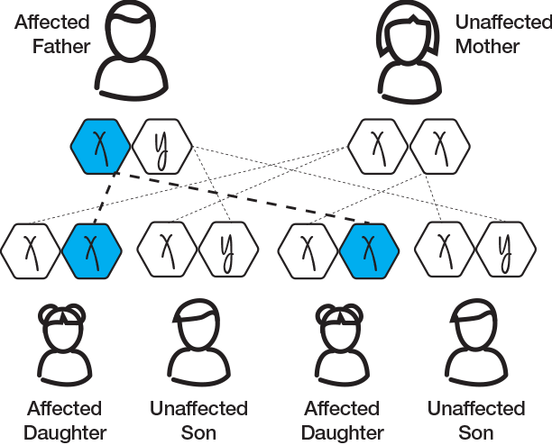 Fabry is caused by genetic mutations located on the X chromosome.2 Men and women can both be affected by Fabry, but the likelihood of a father or a mother passing down the Fabry mutation is not the same – it all depends on the chromosomes they pass on to their children.4,5